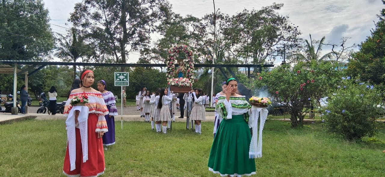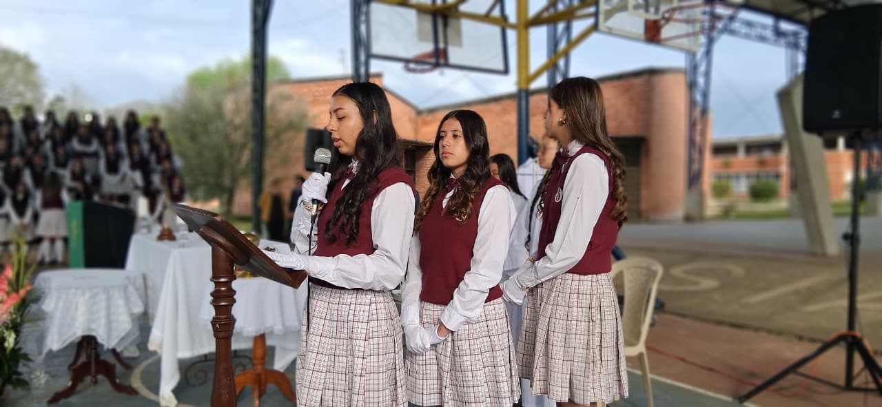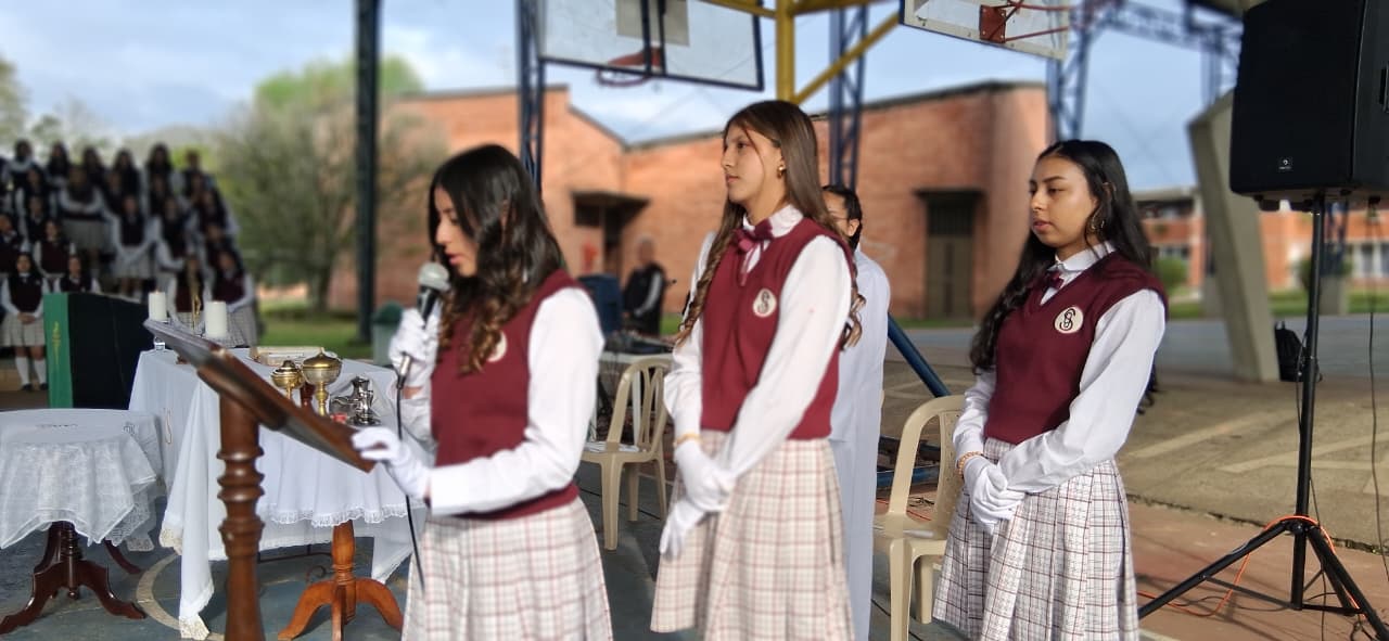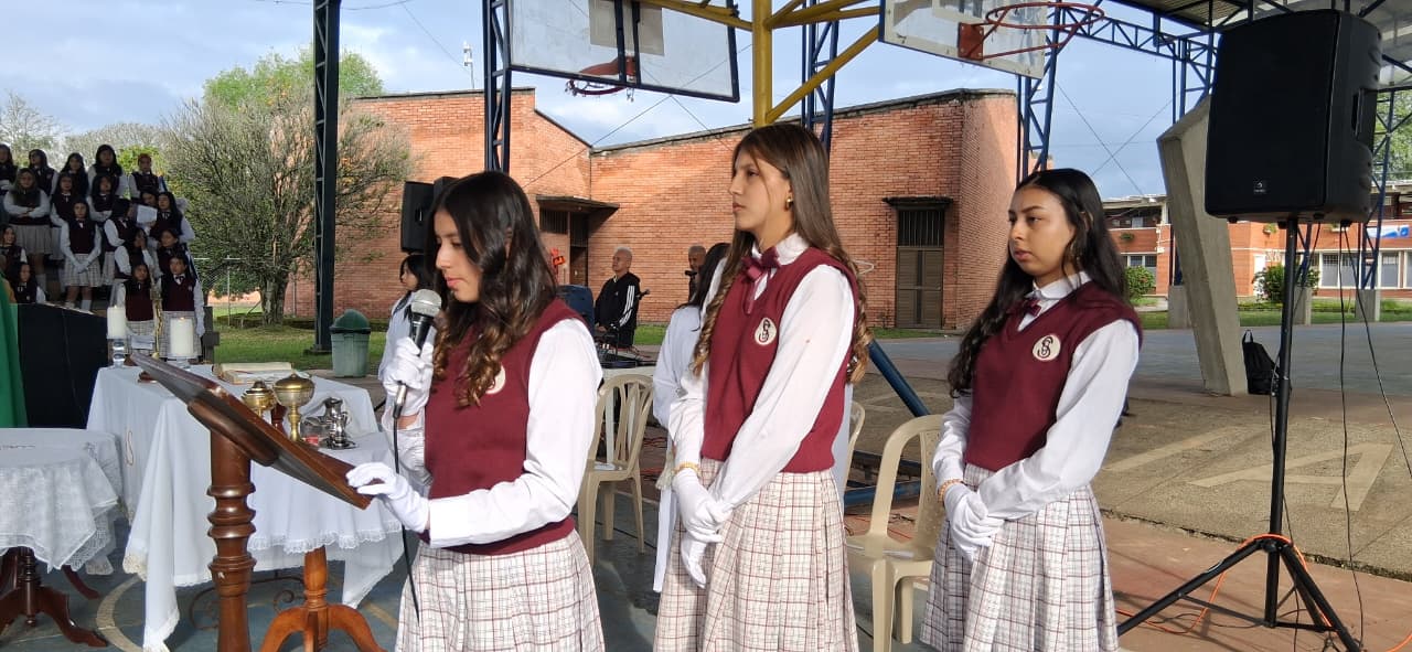 Uno de los momentos más significativos fue la entrega de la Santísima Virgen María Auxiliadora, un acto lleno de fe, devoción y amor. Las estudiantes de grado once, con humildad y profunda gratitud por todo lo recibido, entregaron la imagen de la Virgen a las niñas de grado décimo, confiándoles no solo un símbolo, sino una misión espiritual: continuar bajo el amparo de María, quien lo ha hecho todo y seguirá obrando maravillas en sus vidas.