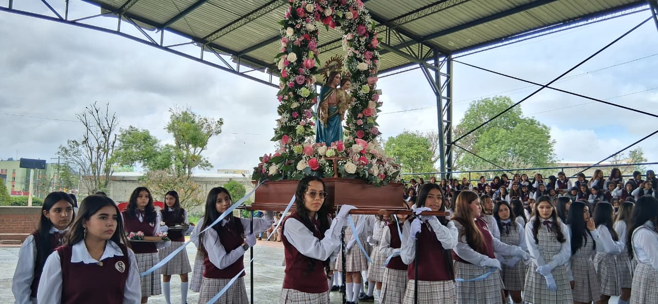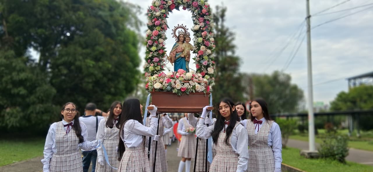 Uno de los momentos más significativos fue la entrega de la Santísima Virgen María Auxiliadora, un acto lleno de fe, devoción y amor. Las estudiantes de grado once, con humildad y profunda gratitud por todo lo recibido, entregaron la imagen de la Virgen a las niñas de grado décimo, confiándoles no solo un símbolo, sino una misión espiritual: continuar bajo el amparo de María, quien lo ha hecho todo y seguirá obrando maravillas en sus vidas.